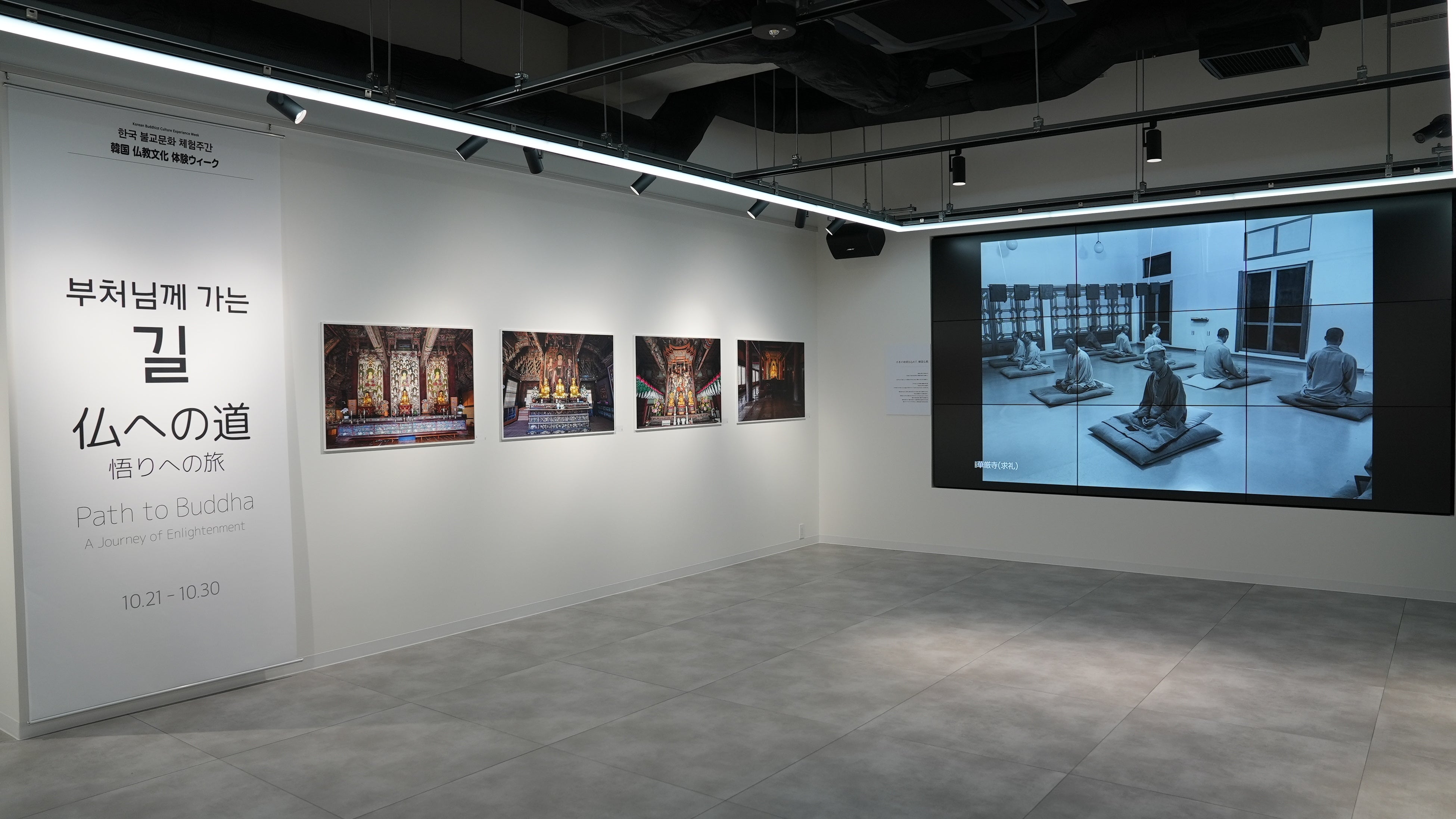 イベントは21日(月)に韓国文化院1階のギャラリーでの「オープニングセレモニー」を皮切りに10日間開催されます。オープニングセレモニーには団長 萬堂スニムを含む関係者や市民が参加し、祈願を唱える韓国仏教の歌儀式「ファチョン」、般若心経の印経体験、韓国精進料理オードブル試食、韓国お坊さんとの茶談など様々な連携体験イベントも同時開催されます。