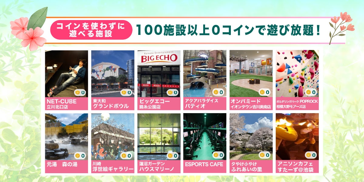 コインを消費して遊ぶのが「レジャパス」の特徴ですが、コインを必要としない無料=「0コイン」の施設もたくさんあります。なんとその数、100施設以上!卒園・卒業や入園・入学シーズンの春休み、ぜひ「レジャパス」を使ってたくさんお出かけして、楽しい想い出を作ってください!