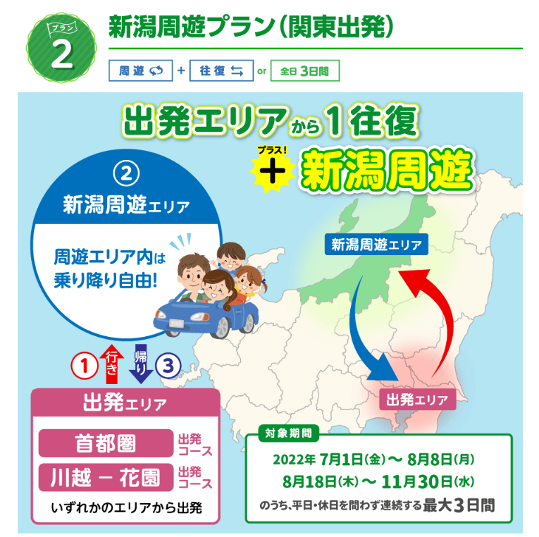 ・・・関東方面からの1往復+新潟県内乗り放題がセットになります。