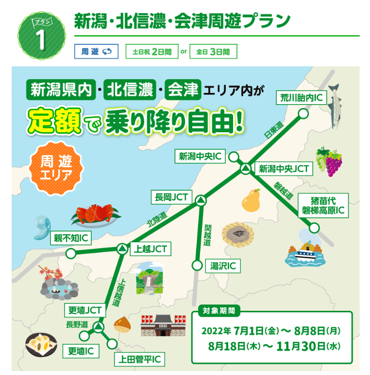 NEXCO東日本新潟支社(新潟市中央区)は、6月24日(金)から普通車及び軽自動車等のETC車を対象に、高速道路料金が割引となるドラ割「新潟観光ドライブパス」を発売しました。