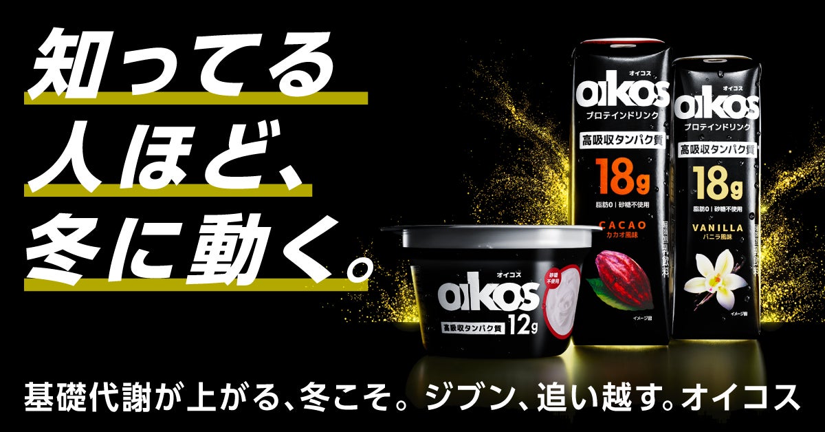 「ダノン オイコス」は、「カラダ動かす、ジブン追い越す。」をタグラインに、スポーツをはじめ、カラダを動かすすべての人の、良質なタンパク質補給を応援するブランドです。「ダノン オイコス ヨーグルト」は脂肪ゼロかつ低GI※2の水切りヨーグルト、そして「ダノン オイコス プロテインドリンク」は脂肪ゼロかつ砂糖不使用のプロテイン乳飲料です。また、「ダノン オイコス」の全ラインアップにおいて、体へ吸収される割合が高く、筋肉合成などにも有効利用される「高吸収タンパク質※3」を使用しており、冬のカラダづくりにぴったりです。