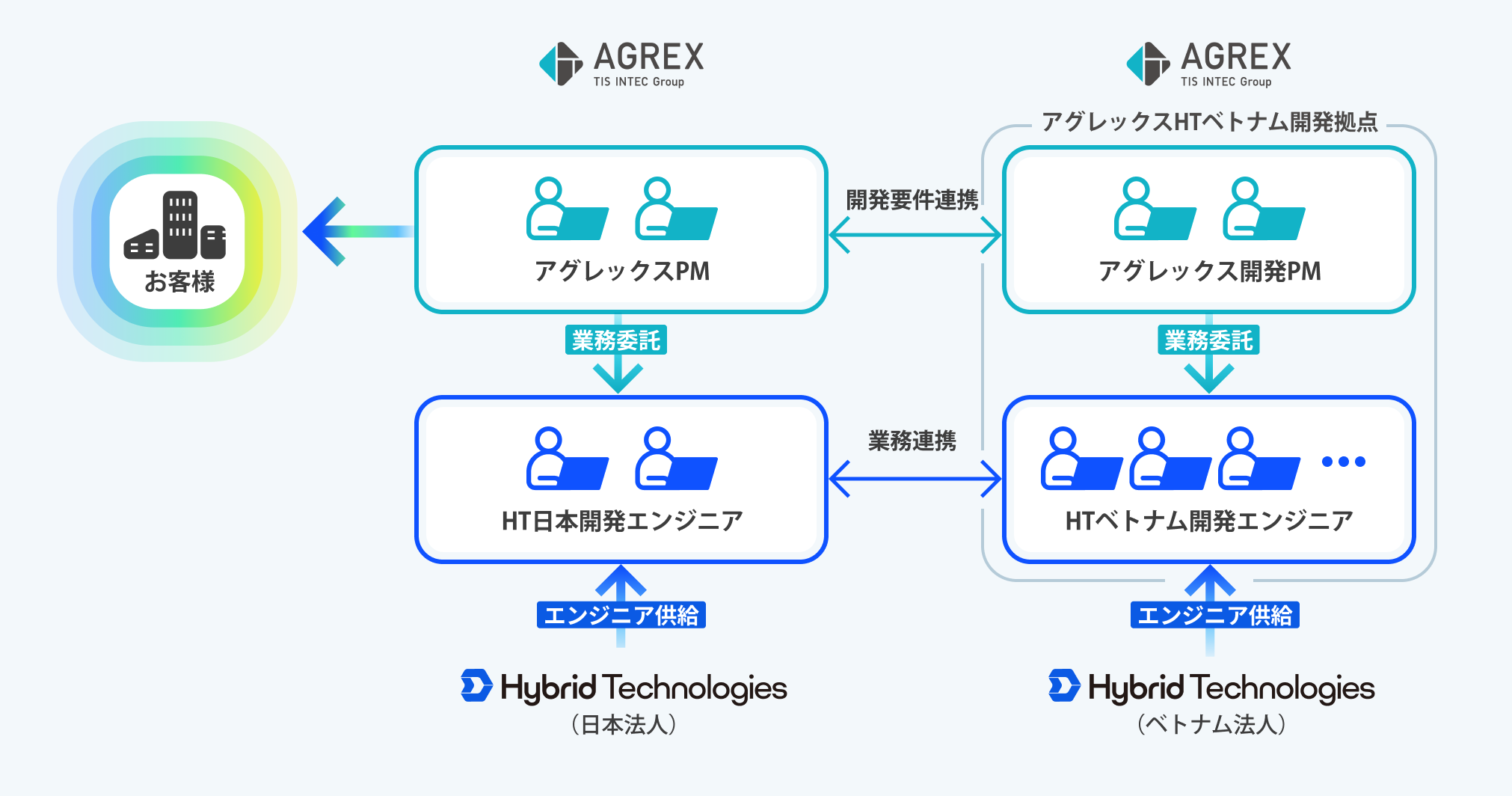 ハイブリッドテクノロジーズとアグレックスは、日越リソースを柔軟に組み合わせた最適な対応体制を組成し、多様なシステム開発ニーズに応えることで、お客様のDX推進を支援していくと共に、今後更なる関係強化に努めてまいります。