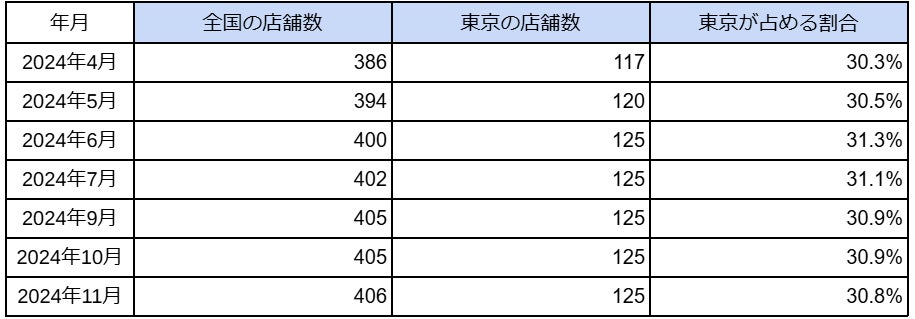 ■2024年11月の国内「アミューズメントポーカールーム」店舗数は406件