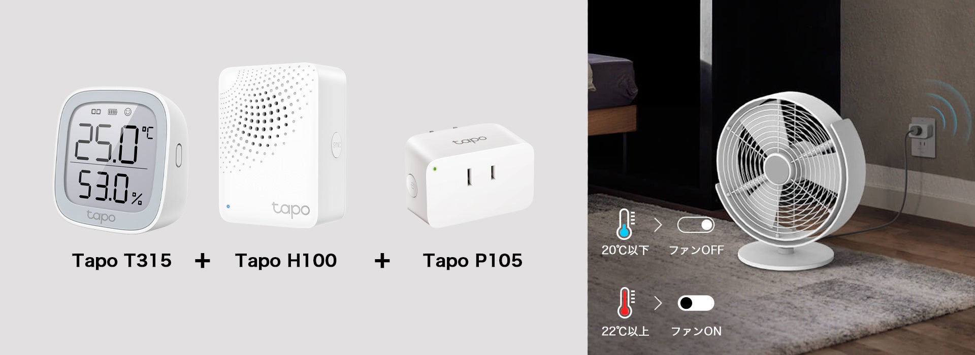 ■室内温度に応じてサーキュレーターの電源をON/OFF(「Tapo T315」+「Tapo H100」+「Tapo P105」)