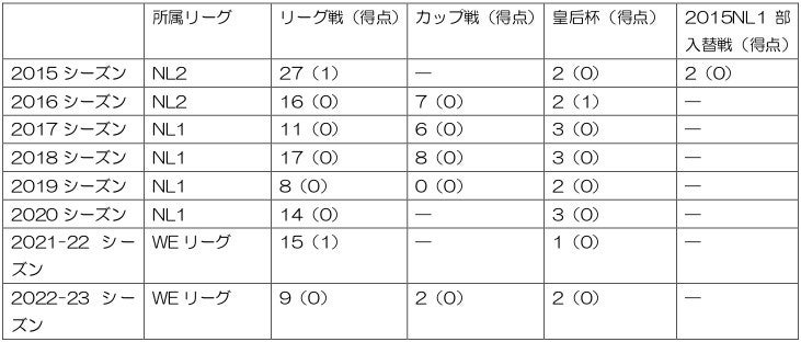 ■経歴 :FCすすき野レディース ― 日テレ・メニーナ ― 日テレ・ベレーザ ― ノジマステラ神奈川相模原