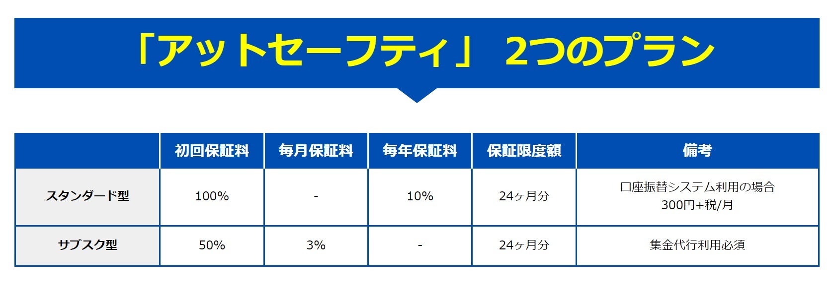 株式会社アットセーフティ(本社:東京都港区 取締役社長CEO:谷健太郎)は、家賃保証大手のジェイリース株式会社(東京本社:東京都新宿区、代表取締役社長:中島 土、以下ジェイリース)との共同開発による、事業用では初となるサブスクプランの支払いが選べるオフィス・クリニックを中心とした事業用不動産の新たな価値創出を目的とした家賃保証商品「アットセーフティ」をリリースいたしました。