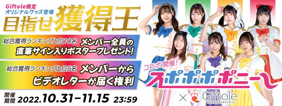 スポポポポニー&TSUTAYA オンラインゲーム Giftole(ギフトーレ) 限定オリジナルグッズ登場とコラボイベント開催のお知らせ