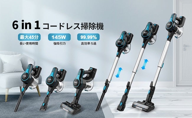 1台6役、ただスティッククリーナーでわない、車用掃除機/ハンディクリーナーとして使用することができ、多様な清掃ニーズを満たします。