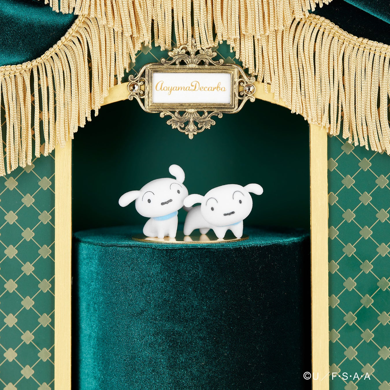 シロのフィギュアは、四つ足で立っている姿と、おすわりの姿の2種類。今回のために金型から製作した、『クレヨンしんちゃんトレイン缶』だけのオリジナルフィギュアです。