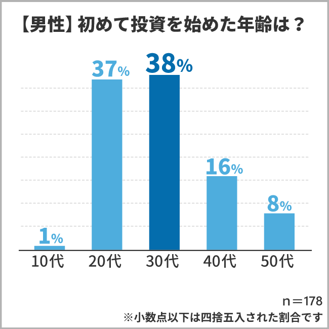 女性より男性の方が若いうちから投資を始めている方が多い結果となっています。