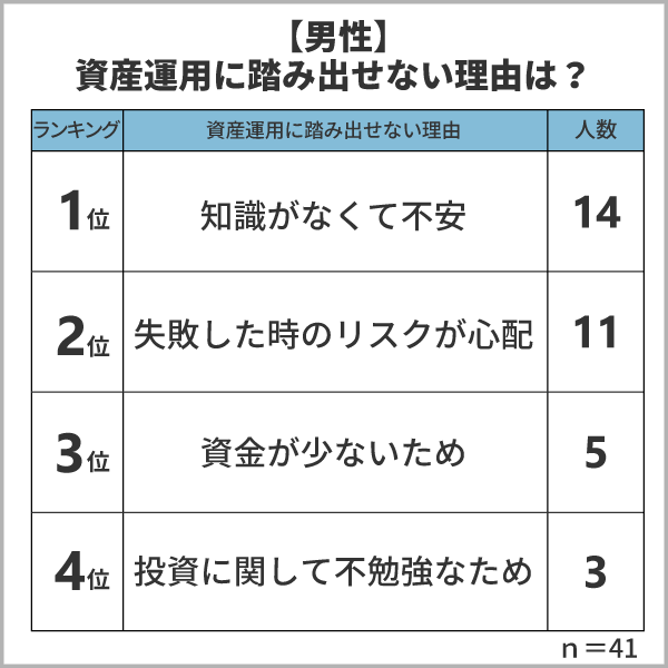 ●投資に踏み出せない理由【男性】第1位は「知識がなくて不安」