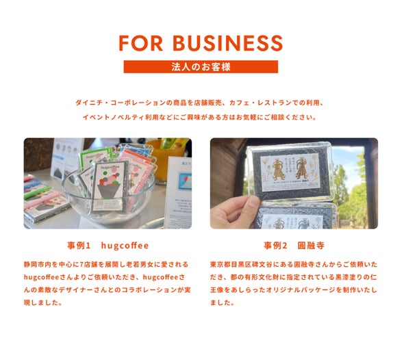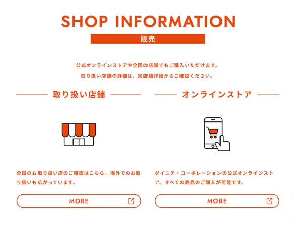 公式オンラインストアや、お取り扱いいただいている全国百貨店や小売店、海外店舗の詳細を充実化し、お客様からのお問い合わせに対しスムーズなご案内を可能にし、商品をよりお買い求めやすくしております。また、近年では商品の卸販売や、カフェ・レストランでのプロフェッショナル利用、さらにはイベントでのノベルティ活用などを希望される法人のお客様向けの窓口を開設し、今後ご利用いただくお客様へ、必要な情報を取り揃えております。