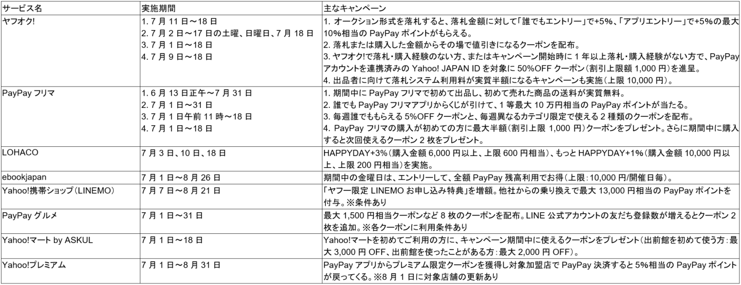 <Yahoo! JAPANが期間中に実施する企画・キャンペーン一覧>