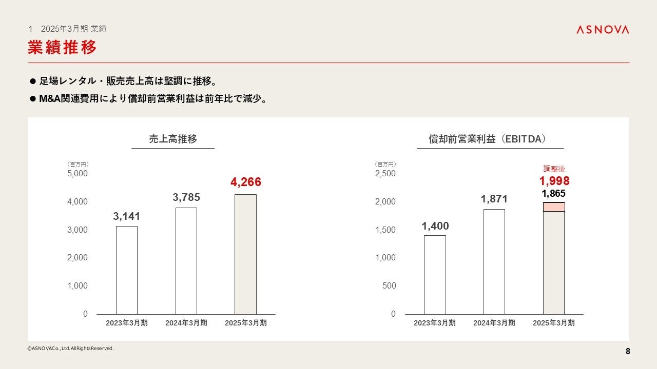 ④ 2025年3月期につきましては、売上高および調整後の償却前営業利益は過去最高となりました。