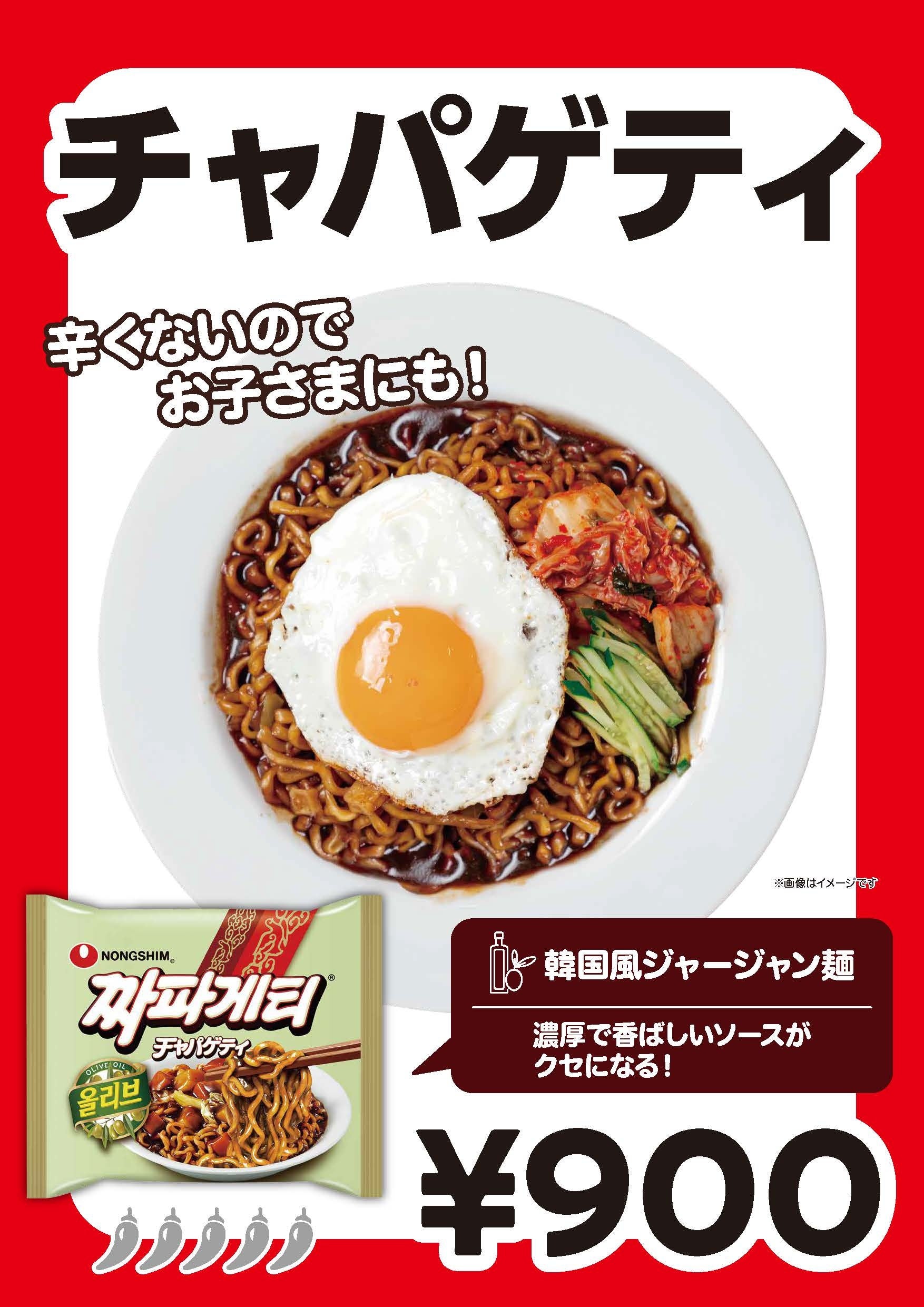 袋麺は全10種から好きな麺をチョイス。ねぎ・キムチ・温泉卵・チーズ・きざみチャーシューのトッピングセットとともに提供します。今年は自動ラーメン調理機の台数を増やし、専用スペースを拡大!このほかにも、海の家で定番の焼きそばを韓国風の味わいで楽しめるフードメニューとして「辛ラーメン焼きそば」「チャパゲティ」に、トッピングを加えて調理したものも提供。暑い夏のビーチを韓国グルメがさらに熱く盛り上げます。
