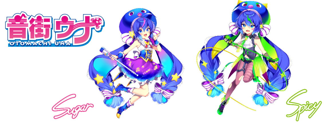 キュートでポップなスイーツ衣装の2人の音街ウナ(Sugar&Spicy)を新規描き下ろし。