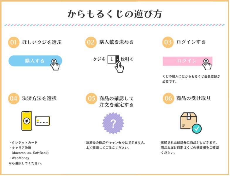スマートフォンやPCから、いつでもどこでも手軽で簡単に、ハズレなしのオンラインくじが購入できるサービスです。