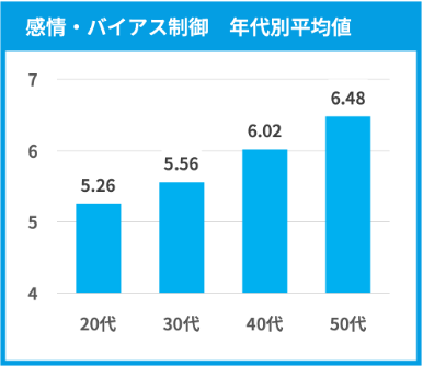 ■自分にも他人にも流されない?年代が上がるほど感情・バイアスを制御して行動できるようになる