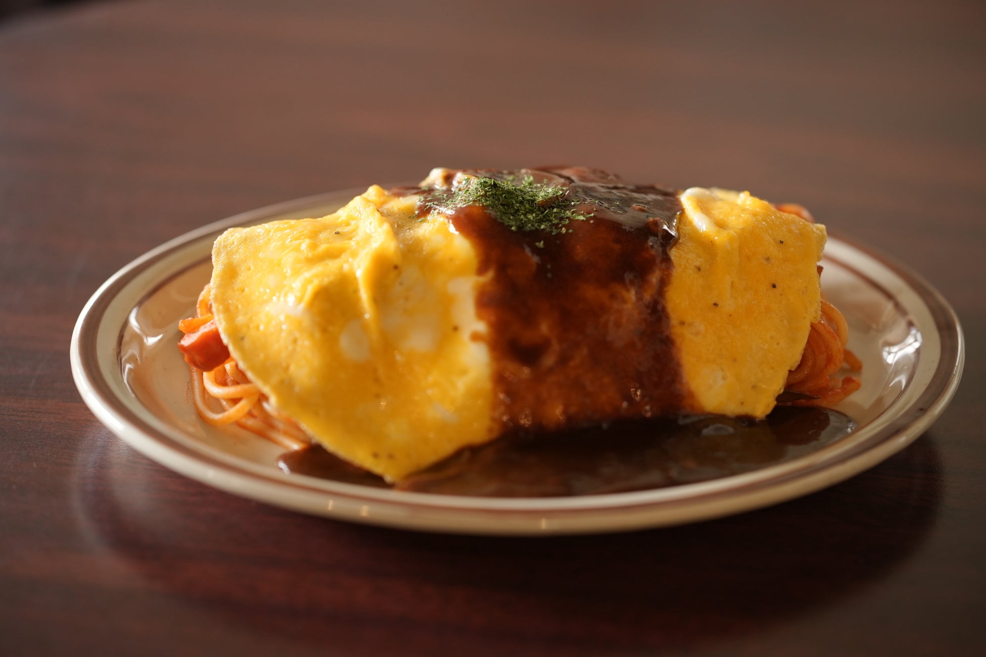 とろとろ玉子×ナポリタン×デミグラスソースの三重奏。女性人気も高い定番メニューです。