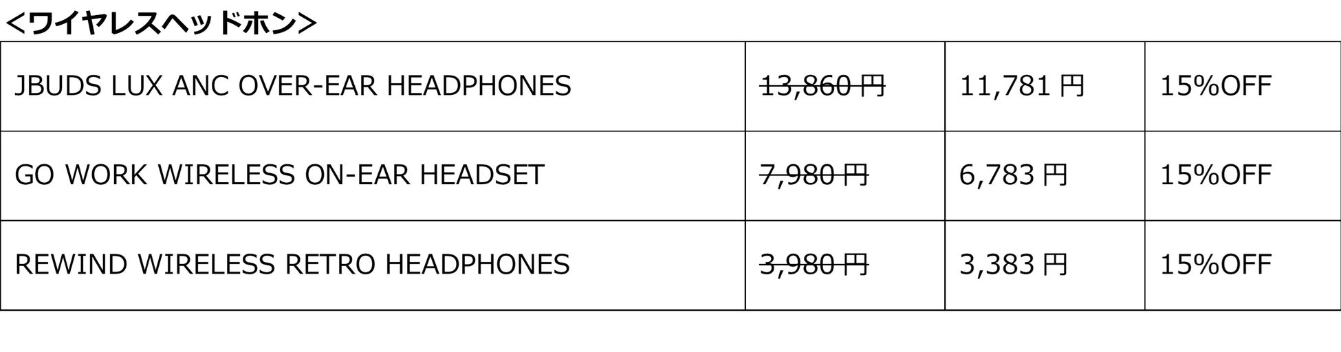 今回は、忙しい現代人のアクティブな毎日をサポートする多機能ワイヤレスイヤホンや100ドル以下のワイヤレスイヤホンで全米No.1(※2)を獲得したJLabのスタンダードイヤホンなどを30%OFFで販売。さらに、「CES2024」(※3)で「CES Picks Award from TWICE」を受賞した4色のアースカラーヘッドホン「JBUDS LUX ANC OVER-EAR HEADPHONES」は、発売以来の最安値となる15%OFFの11,781円(税込)でご購入いただけます。