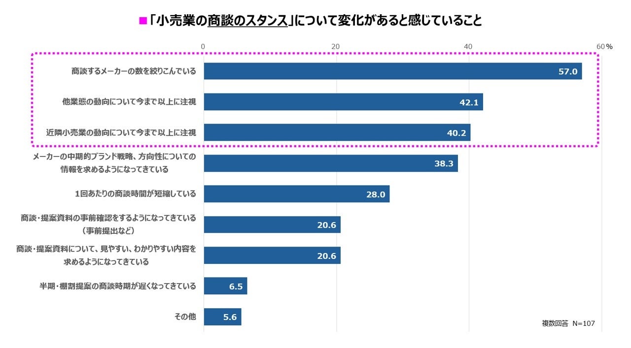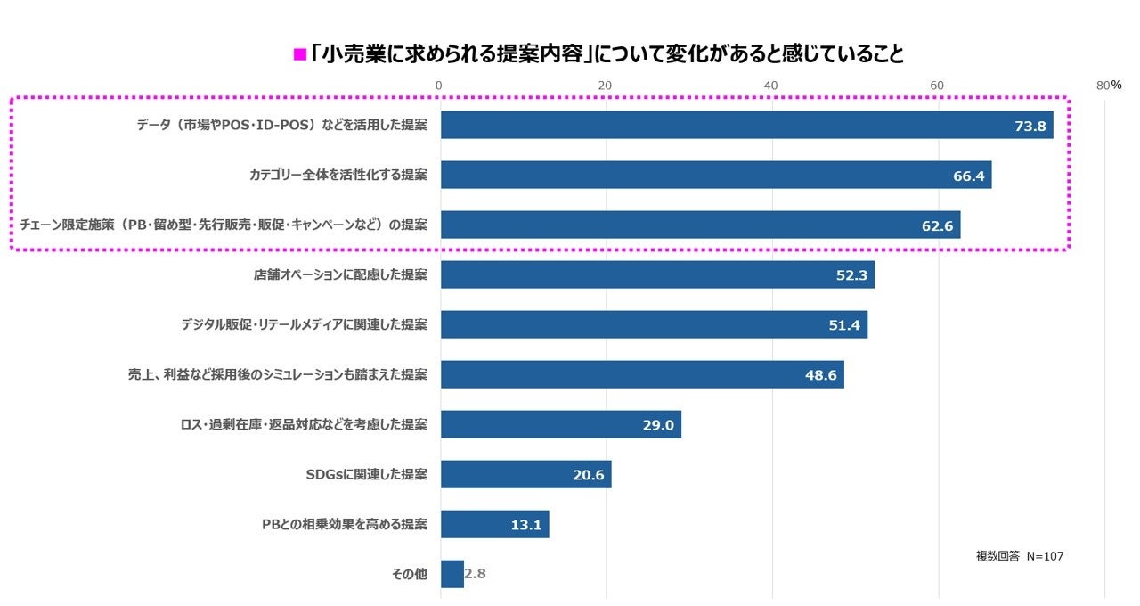 本年の調査結果では、小売業は上位集中化が進み競争関係を強く意識する中で、差別化やカテゴリーの活性化を図るために、商談するメーカーを厳選しながら、今まで以上に市場やPOSデータを活用した提案やチェーン限定施策、リテールメディアやデジタル販促の提案を求めていることが明らかになりました。