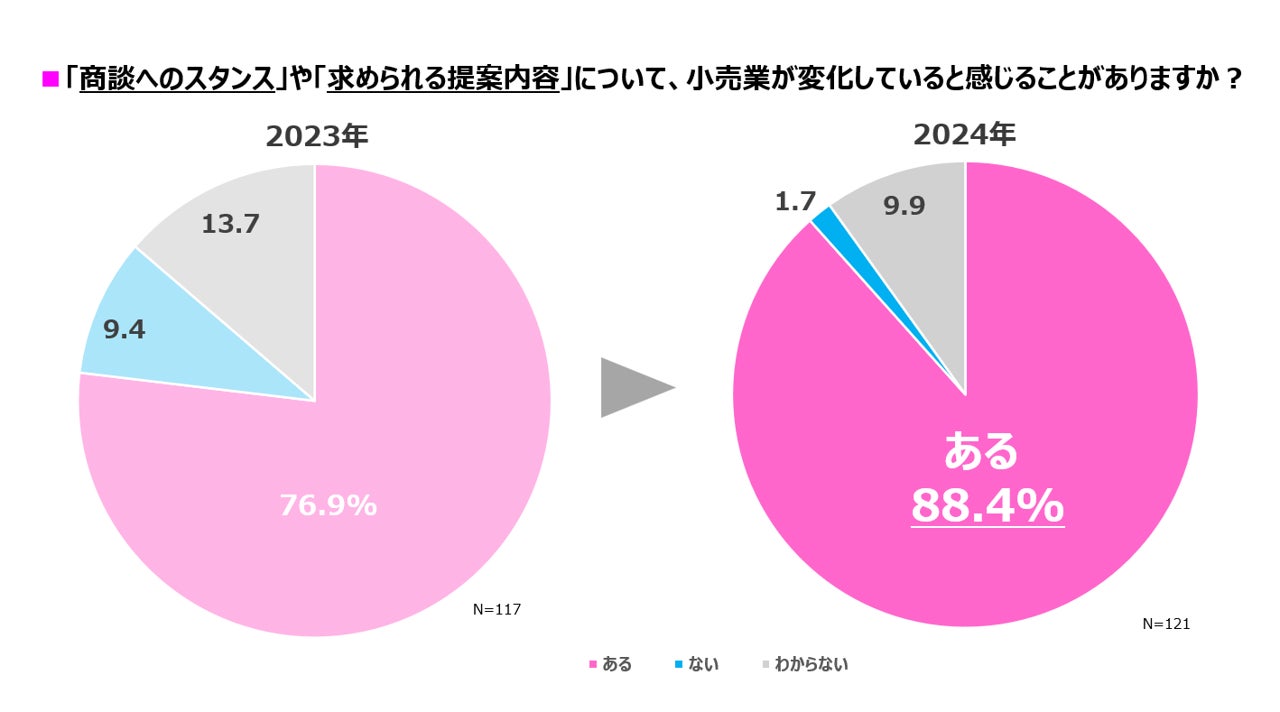 ■「小売業の商談スタンスに変化がある」と回答したのは全体の88.4%(昨年対比+11.5pt)
