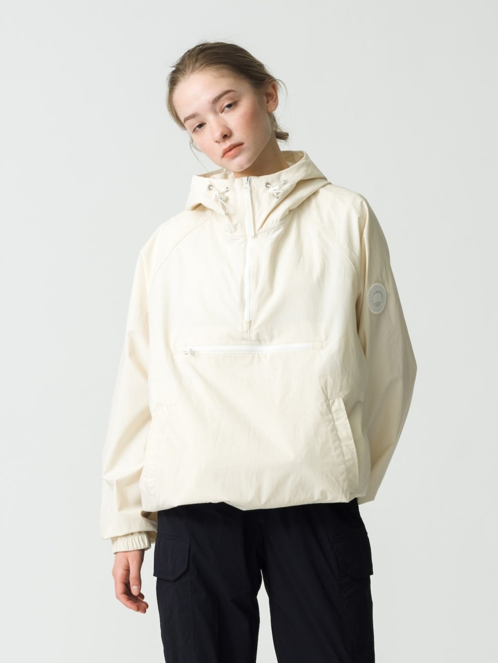 軽量なアノラックスタイルに、柔らかなリップストップ素材を使用。便利なポケットと調節可能なフードで、自在にカスタマイズ可能です。
