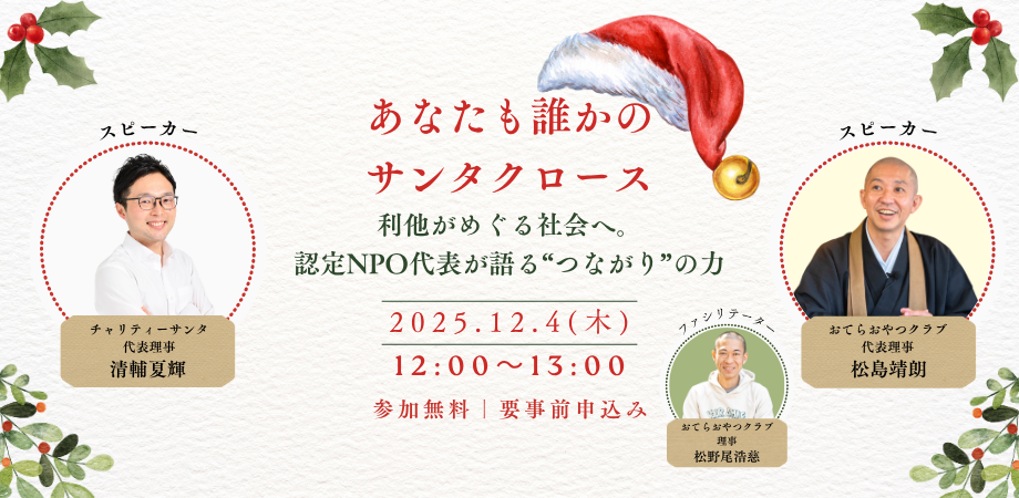 あなたも誰かのサンタクロース ── 利他がめぐる社会へ。認定NPO代表が語る“つながり”の力