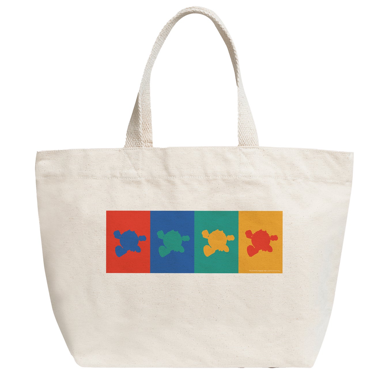 『PAC-MAN』誕生の45周年を記念して、本展示ではアート作品だけでなくオリジナルグッズも販売します。アート作品と同じデザインをあしらった缶バッジや、『PAC-MAN』のシルエットが映えるキャンバストートバッグに加え、下記掲載アイテム以外のオリジナルグッズを複数ご用意しております。