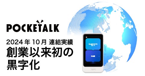 ポケトーク株式会社(本社:東京都港区芝二丁目 2 番 12 号 浜松町 PREX4階 代表取締役社長:若山 幹晴)は、2024年10月の連結業績において、創業以来初の黒字化を達成したことをお知らせいたします。