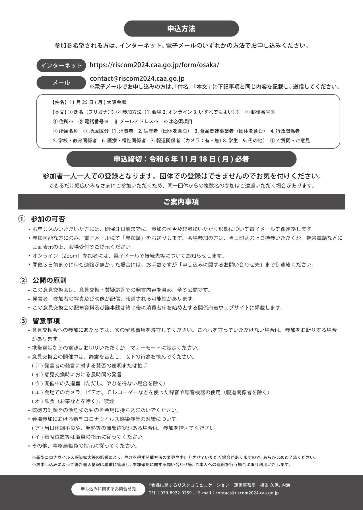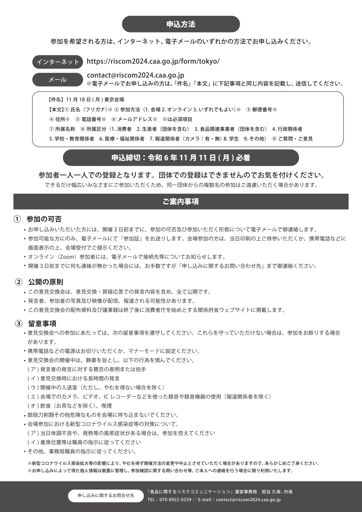 ●電子メール 以下参加申込書に明記の上contact■riscom2024.caa.go.jpへ送付