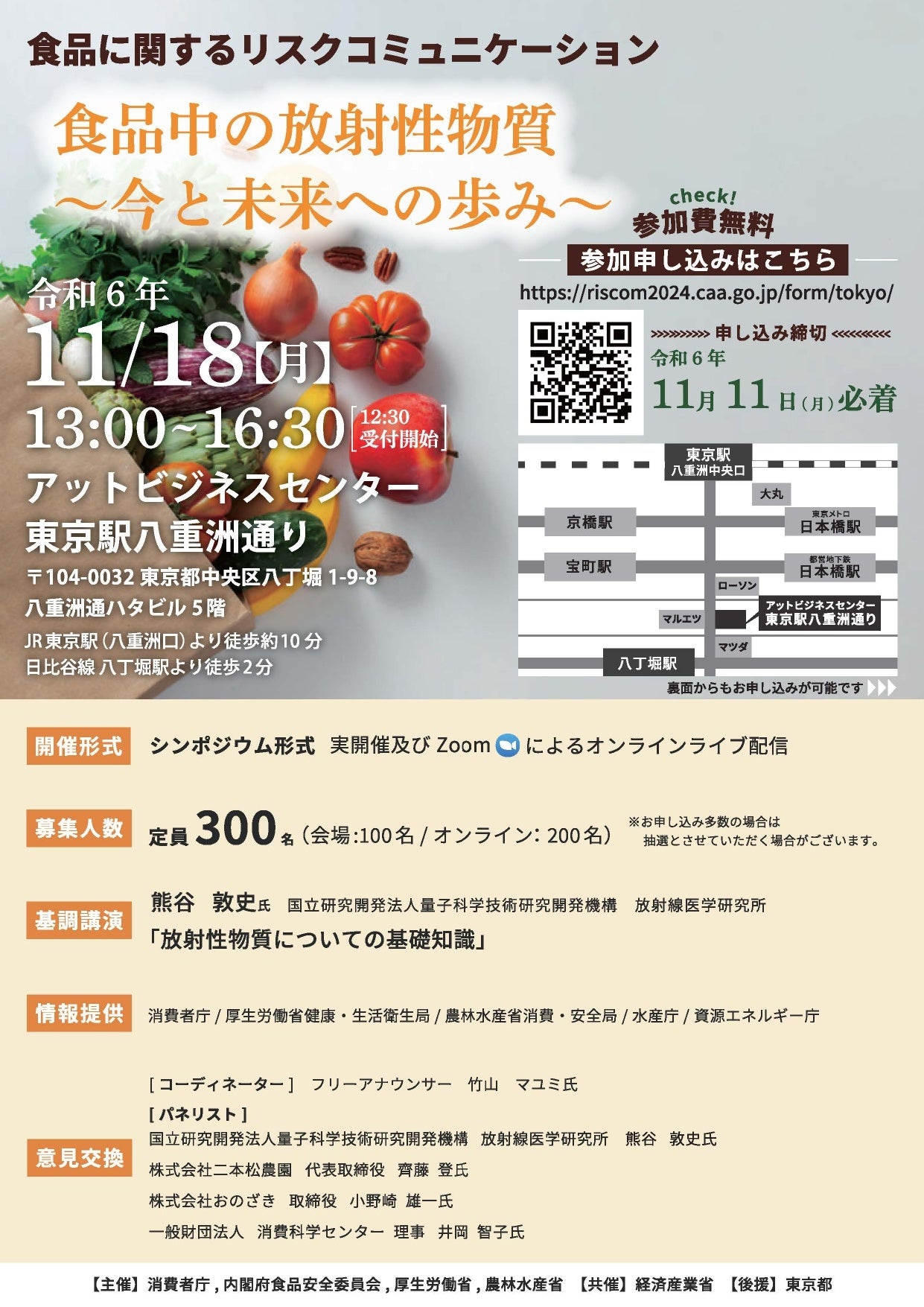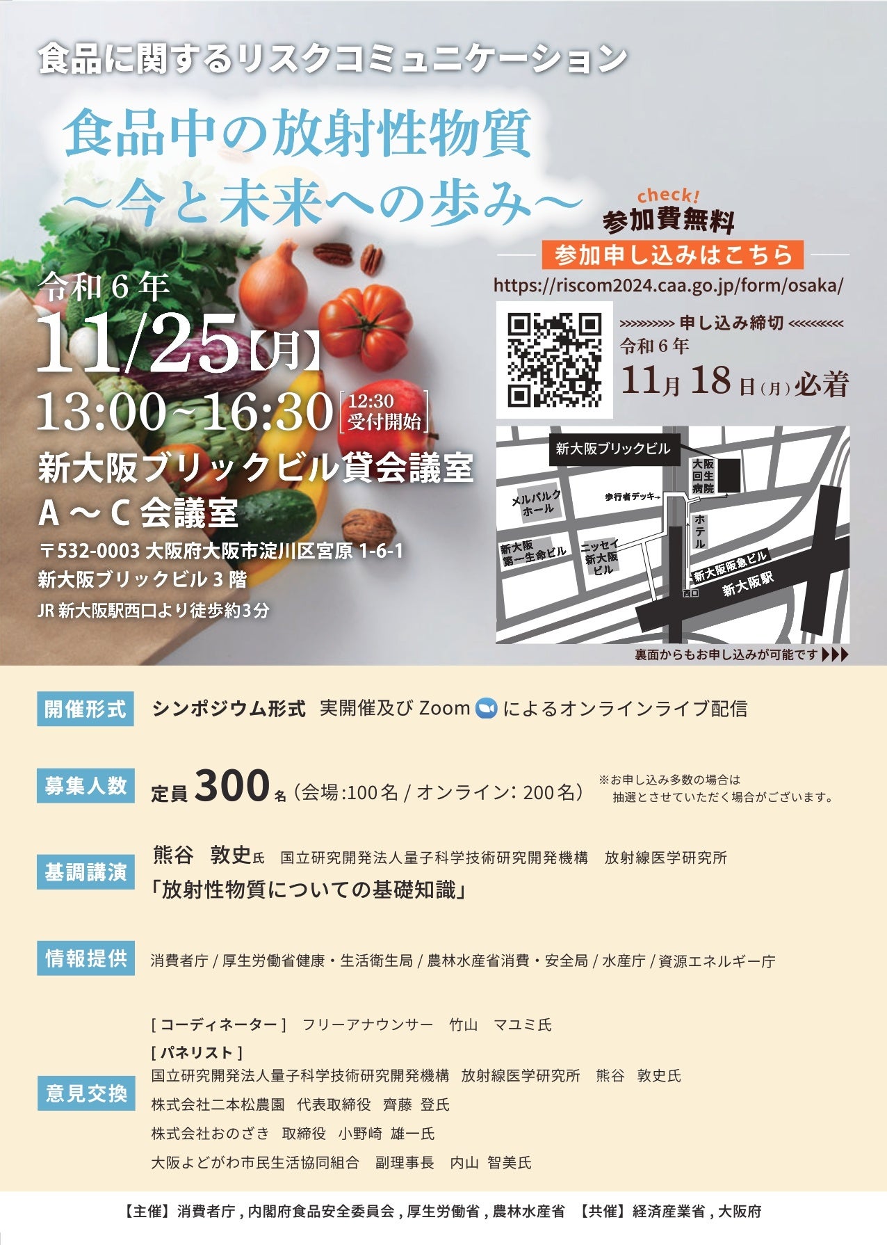 消費者庁、内閣府食品安全委員会事務局、厚生労働省は食品に関するリスクコミュニケーション「食品中の放射性物質~今と未来への歩み~」を2024年11月18日(月)に東京都、11月25日(月)に大阪府において開催いたします。(株式会社シード・プランニングが実行・運営を受託・支援)