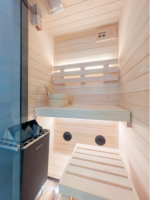 弊社のサウナは、最高温度110℃、セルフロウリュ対応の高性能設計を採用しながらも、家具のようにシンプルかつ洗練されたデザインで、容易に設置が可能です。