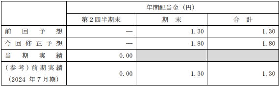 2025年7月期通期業績予想の修正及び配当予想の修正に関するお知らせ