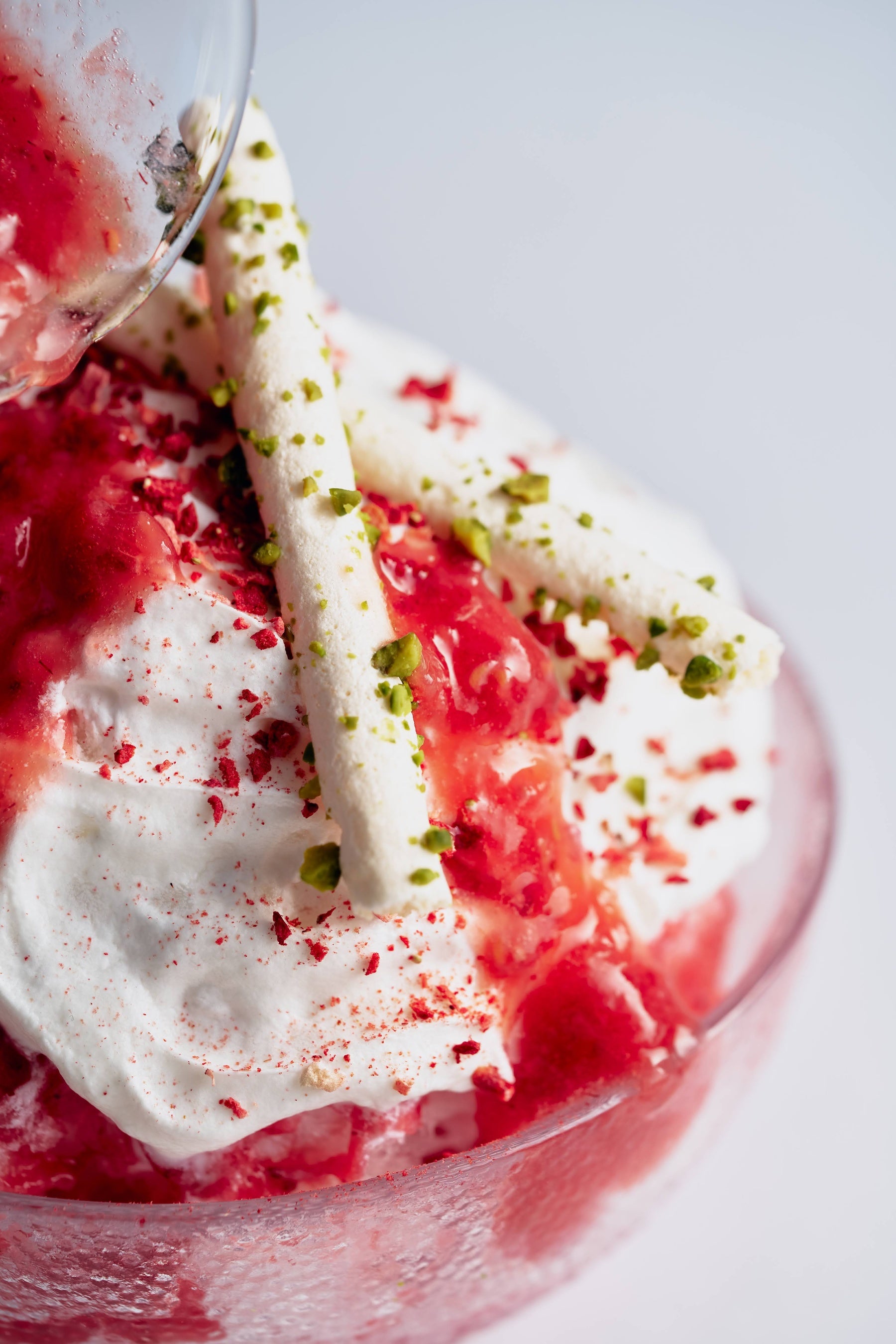 ふわふわの氷に練乳、そして苺とフランボワーズのコンポートソース。