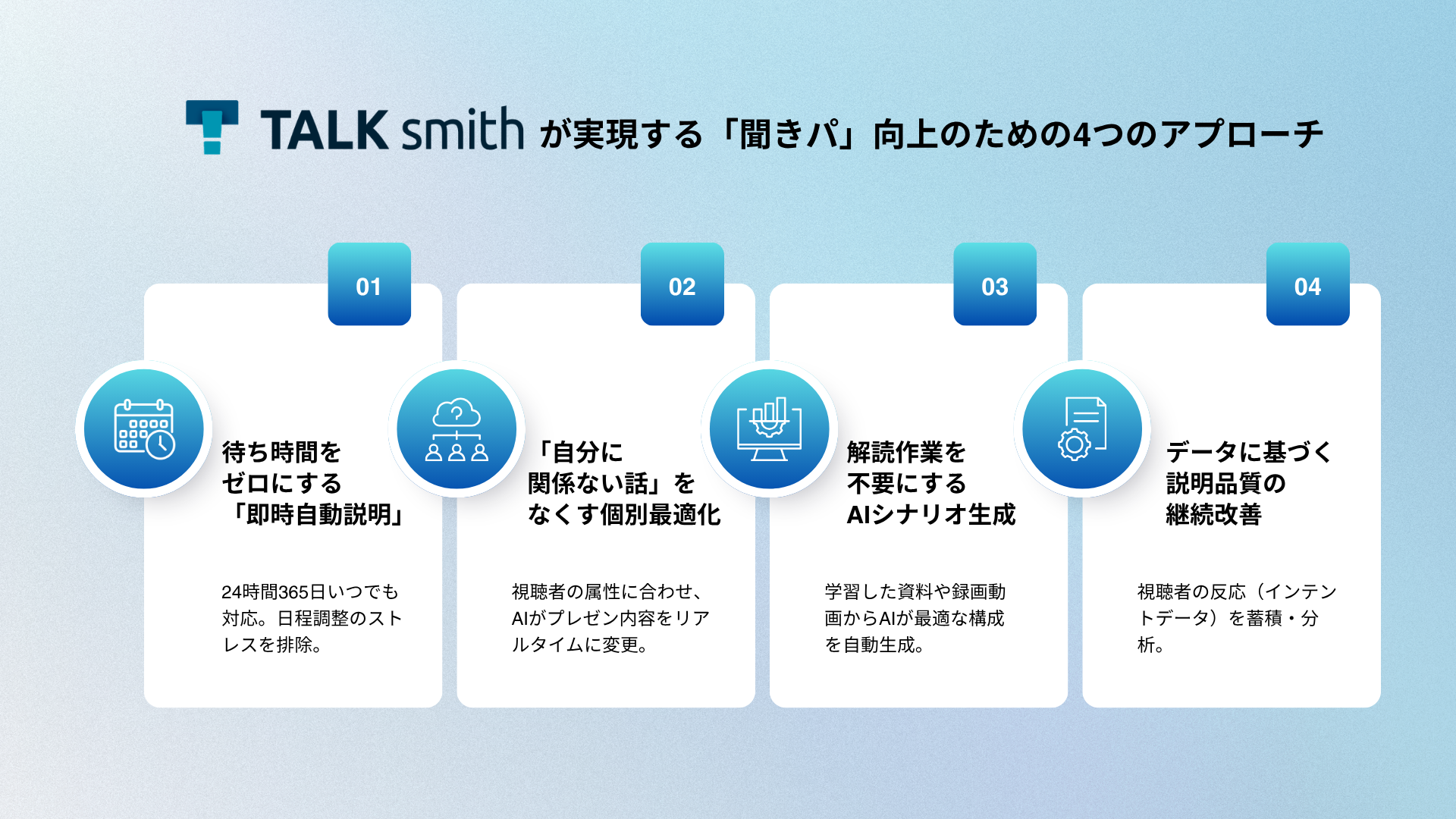 ◼️TALKsmithが実現する「聞きパ」向上のための4つのアプローチ