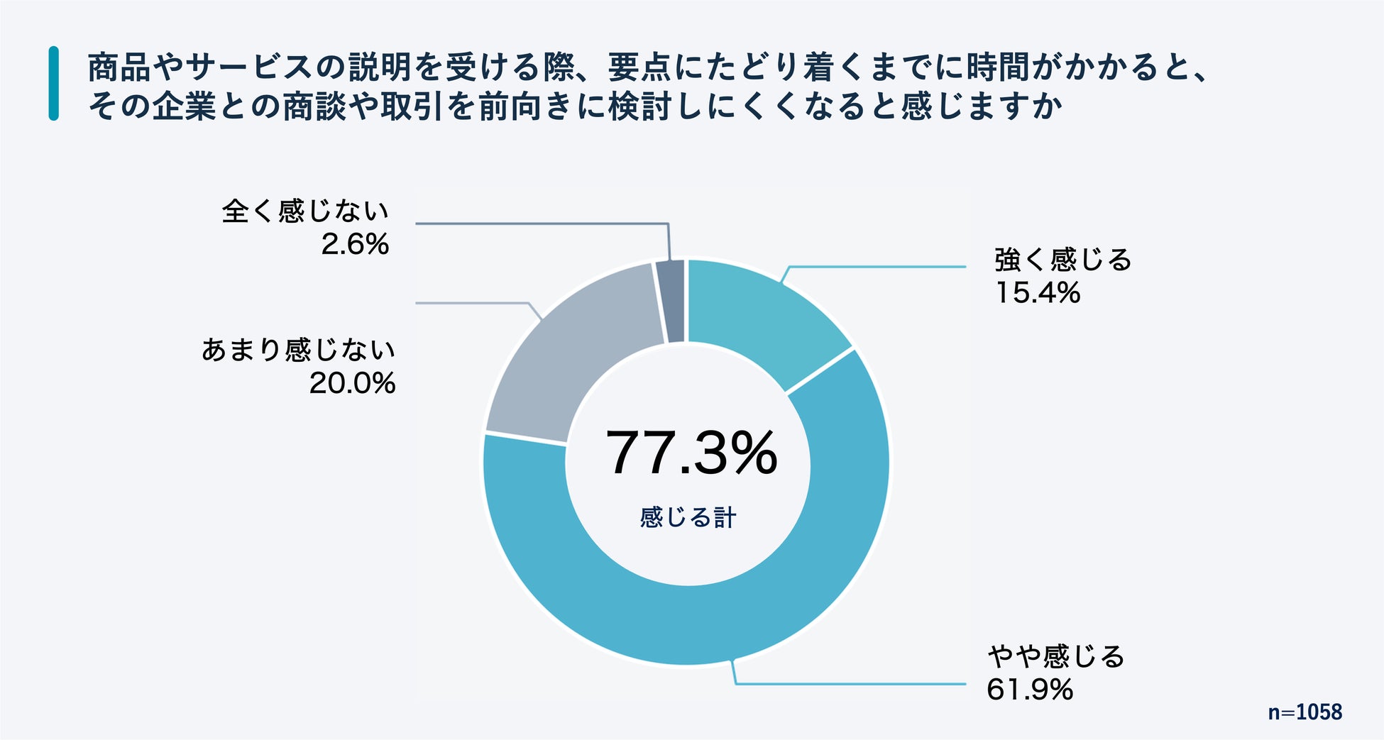 また、77.3%が「内容を理解・納得するまでの負担(納得コスト)が大きいと、そのサービスや商品を前向きに検討しにくくなる」と回答しており 、低い「聞きパ」が商談の優先順位低下や比較候補からの除外を招いている実態が浮き彫りになりました。