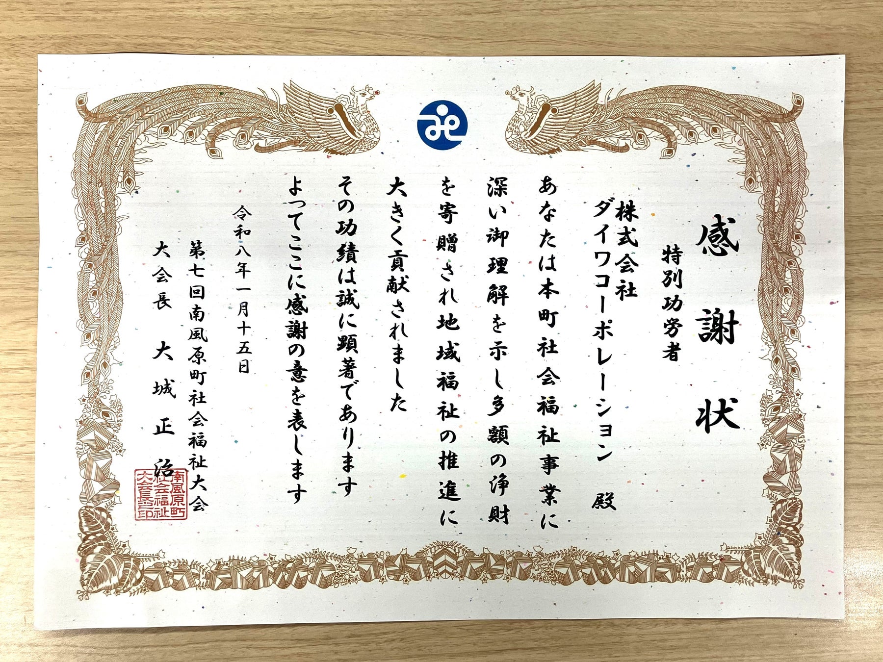 物流サービスを提供する株式会社ダイワコーポレーション(所在地:東京都品川区、代表取締役社長:曽根 和光)は、沖縄県南風原町と社会福祉法人南風原町社会福祉協議会が主催する「第7回南風原町社会福祉大会」で、社会貢献活動が評価され「特別功労者」として表彰されました。