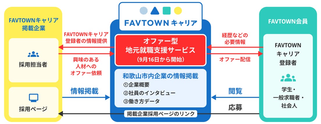 今回、その取組をさらに強化すべく、和歌山市とシナジーマーケティング株式会社が連携協定に基づき、市外へ出た若者を中心として関係人口創出に取り組んできた「FAVTOWN(ファボタウン)」の強みを活かし、新たな地元就職支援サービス「FAVTOWNキャリア」を7月15日より開始します。