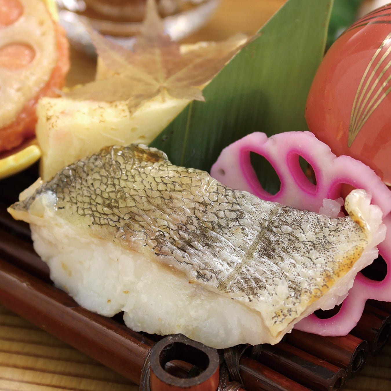 国産鶏肉を60%以上使用した、肉感たっぷりの「柚子胡椒松風」です。お肉と相性の良い柚子胡椒を加えることで、ほどよい辛味とさっぱりとした後味が特徴の上品な味わいに仕上げました。おせちのマスにぴったり収まる高さで設計されており、カットするだけで美しく盛り付けられる便利さも魅力。