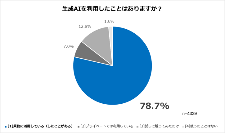 調査結果として、78.7%の国内パートナー(シフト勤務除く)が生成AIを「業務に活用している」と回答したことが判明。