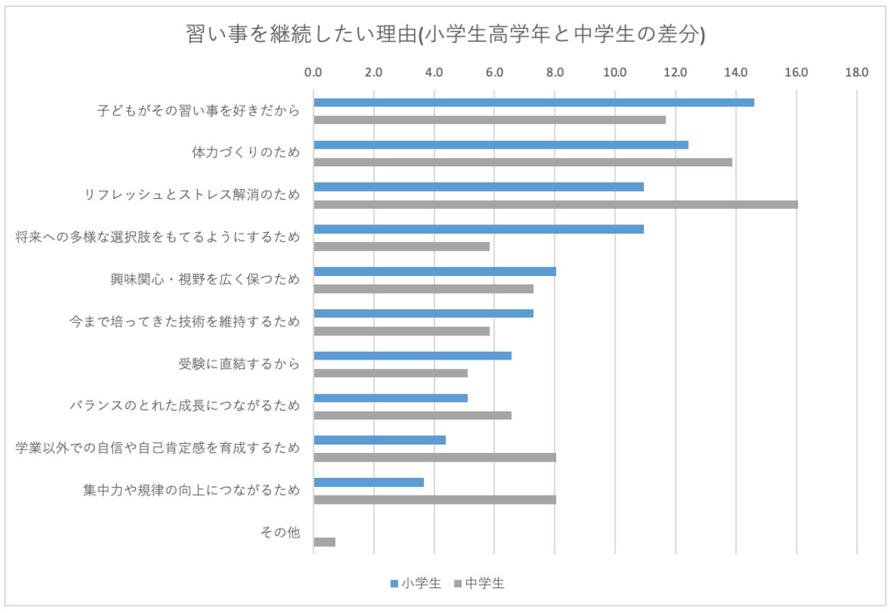 いようです。一方で、中学生は受験を控え、学業に専念する中での気分転換として習い事を
