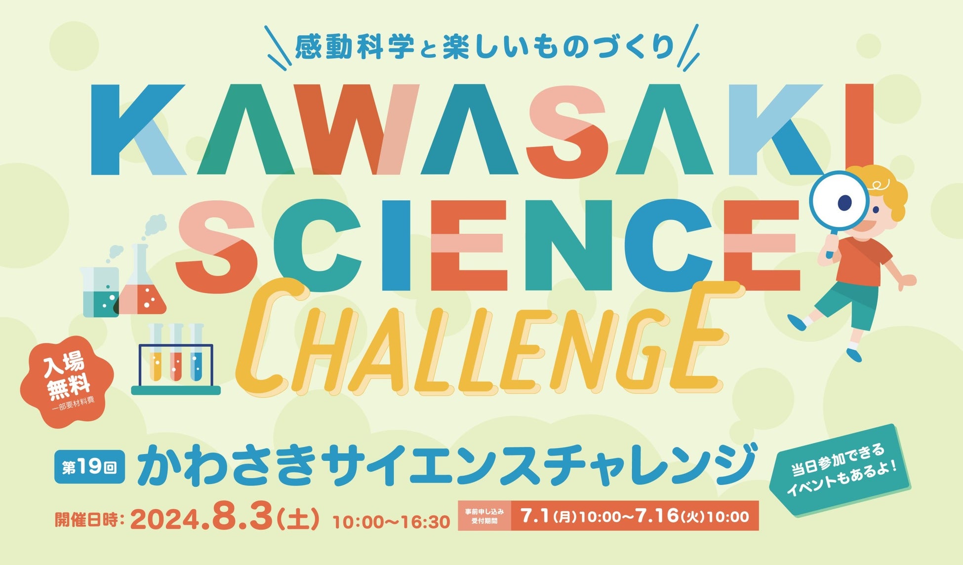 かわさきサイエンスチャレンジは、主に小学生を対象に、身近な材料を使って実験や工作など、科学とものづくりに興味をもってもらう事を目的として、毎年夏休みに開催されます。