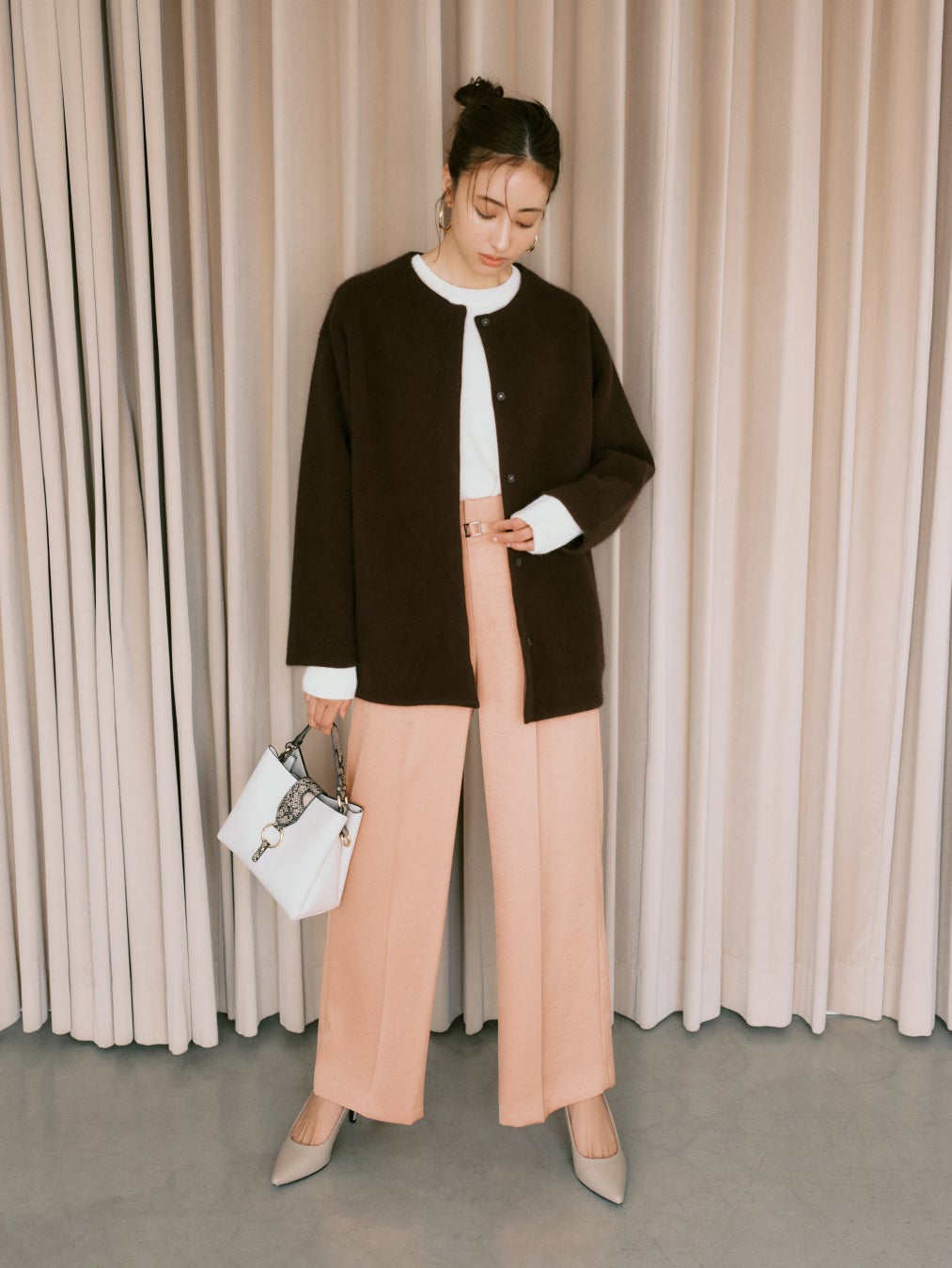 CARDIGAN/¥22,000、PANTS/¥20,900、PIERCE (w/EAR CUFF)/¥6,380