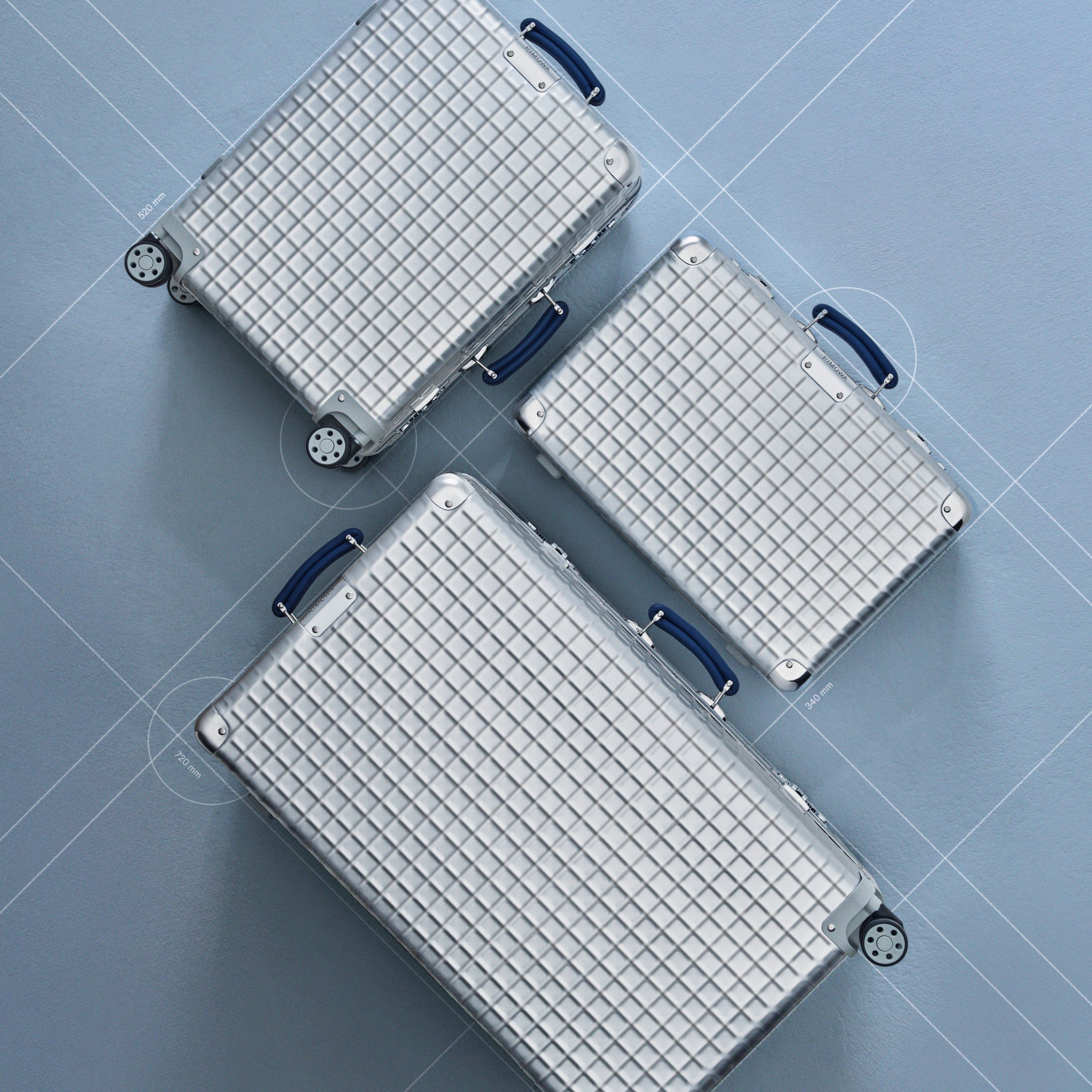 ハンドキャリーケース、キャビンサイズに加え、アーカイブピースからインスピレーションを受けた限定コレクションとしては初となるトランクサイズの3サイズで登場する「Classic Aluminium Grid」は、 2026年3月26日より、一部のリモワストアおよびRIMOWA.comにて販売を開始いたします。