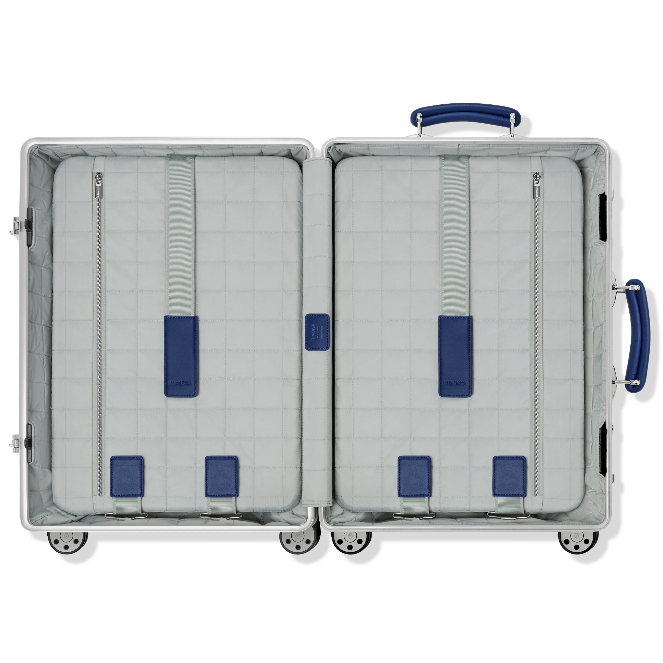 本コレクションの全製品はケルンの歴史ある工場で製造され、RIMOWAの長年にわたるアルミニウム加工技術の証として、生涯保証が付帯します。レザーハンドル、光沢のあるパラジウム製ロック、飛行機モチーフのリベットといったClassicシリーズのシグネチャー要素に加え、スムーズな走行を実現するマルチホイールシステムや無段階調整のテレスコープハンドルなど、現代的な機能も備えられています。また、 RIMOWAの歴史的カラーへのオマージュとして採用されたブルーのレザーアクセントは、アーカイブのルーツを強調しつつ、アイテム全体に洗練された個性をプラスしています。