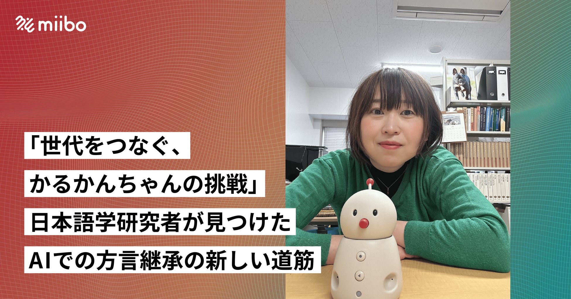 株式会社miibo(本社:東京都港区、代表取締役:功刀雅士)は、AIを活用した「方言継承への取り組み」と「学生の論理力向上や教員の業務負担軽減」について、鹿児島大学 総合教育機構共通教育センター 准教授 坂井 美日 氏へのインタビューを公式サイトで公開しました。