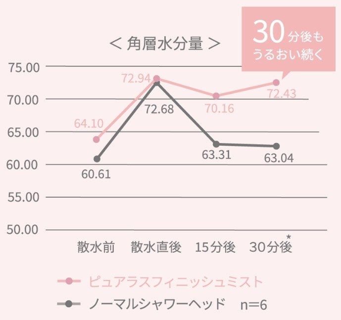 ※3:室温・湿度を一定の環境下にし、水温40℃±1℃にて散水部(頬)より同等の距離から10 秒散水。