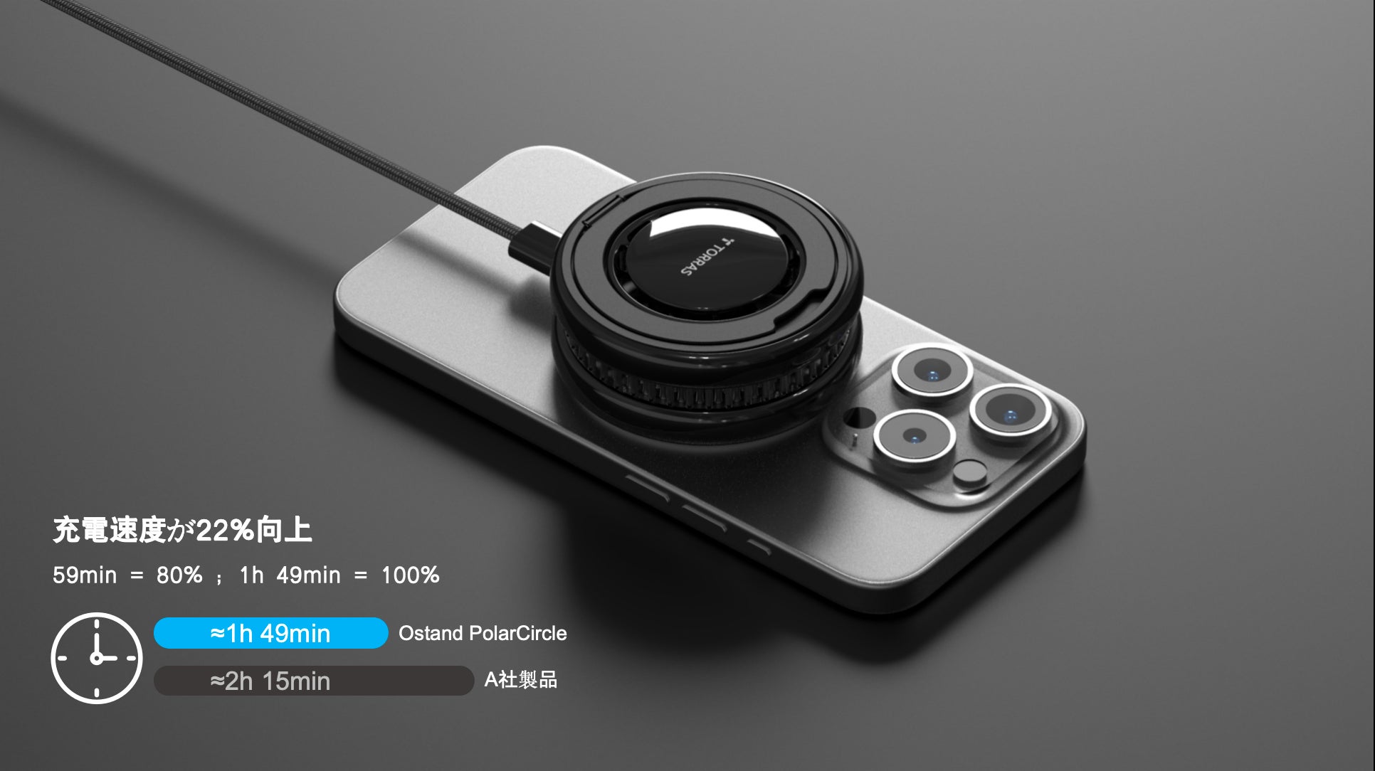 多くのユーザーは、ワイヤレス充電やMagSafe充電の遅さやバッテリーの発熱に悩まされています。TORRASはこれらの問題を解決するため、最新の冷却ワイヤレス充電技術を開発しました。Ostand PolarCircle(Qi2対応)は、発熱を抑え、効率的な充電体験を提供します。