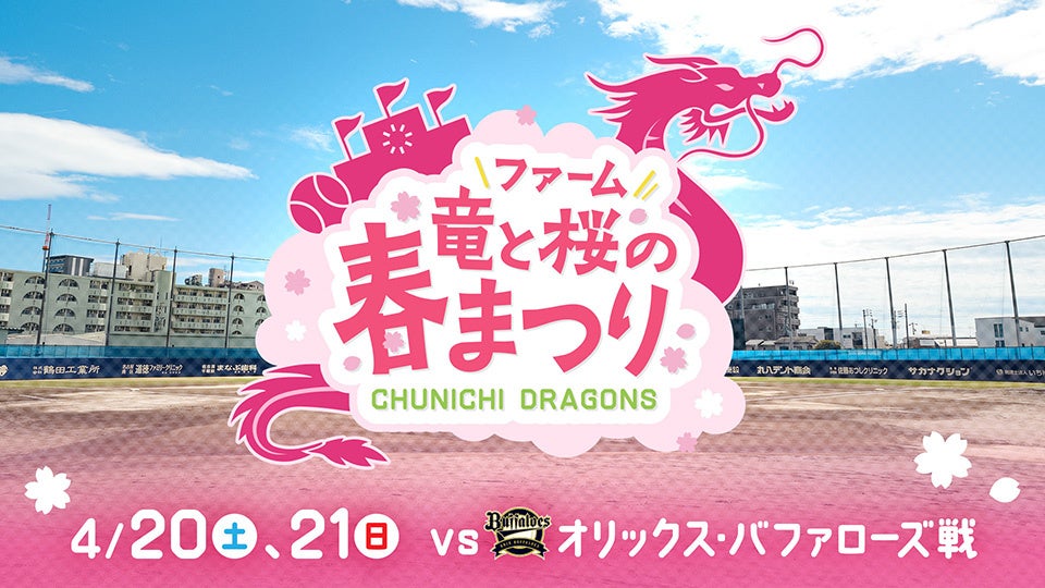 4月20日(土)、21日(日)のウエスタン・リーグ公式戦、オリックス・バファローズ戦で、「ファーム 竜と桜の春まつり」を開催いたします!